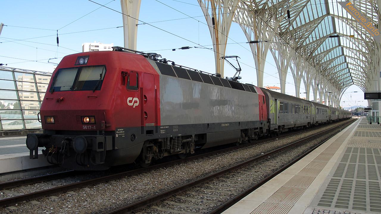 Sulla destra trovano spazio i loghi istituzionali di CP – Comboios de Portugal e lo slogan aziendale.