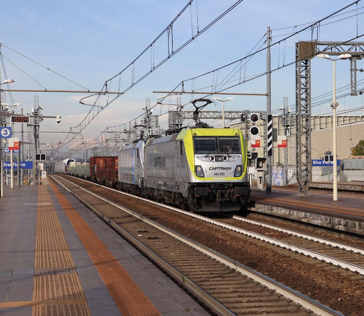 In testa la 494 505 in livrea sociale, seguita dalla 494 705 in livrea Railpool, anch’essa in forza alla compagnia. In composizione figuravano inoltre numerosi carri, necessari a garantire il corretto peso frenato del convoglio durante il trasferimento tecnico.