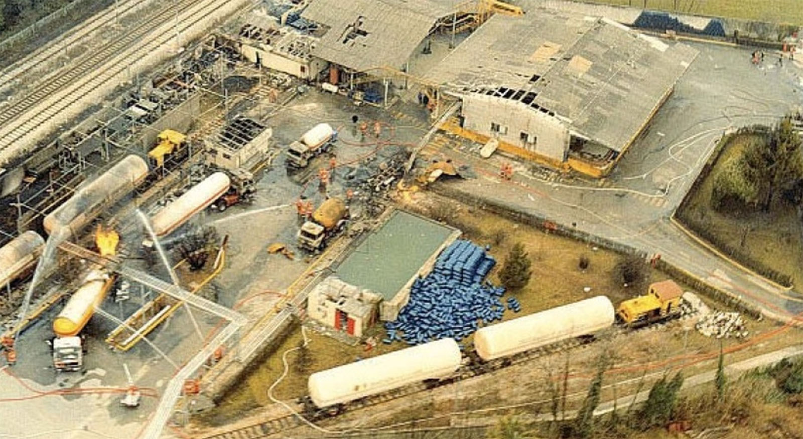 Nel corso della mattinata un’ulteriore autocisterna esplose all’interno dello stabilimento, aggravando la situazione e rendendo ancora più complesso il lavoro dei soccorritori.